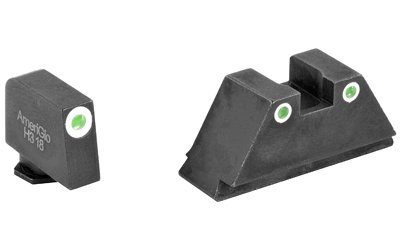 AmeriGlo suppressor height sets provide an elevated sight picture, able to co-witness with slide-mounted miniature red dot optics and suppressors. This tritium sight set is designed for use on Glock MOS pistols using the Aimpoint ACRO and Holosun 509T optics. For more information on how to choose the correct height set for your suppressor or optic, visit the AmeriGlo website, under the INFO tab.