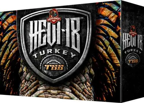 HEVI-Shot goes ultradense with HEVI-18 TSS Turkey, bringing best in class performance to turkey hunters. HEVI-18 TSS 18 g/cc density pellets provide high pellet counts and long-range lethality. Hevi-Shot has achieve incredibly tight patterns thanks to their unique, friction-free, sealed-in-the-shell spherical buffer.