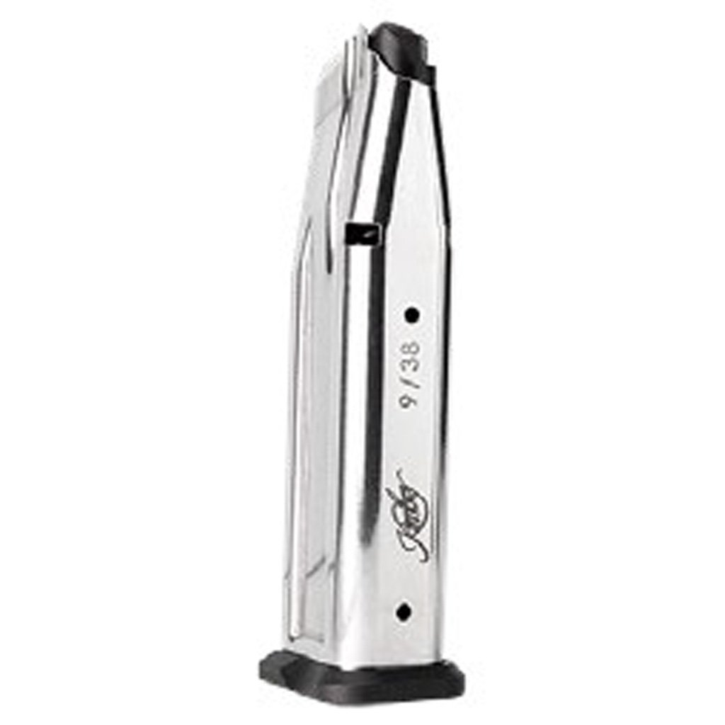 A 19 round magazine for the 9mm Kimber 2K11 Pro Pistols. Polished steel construction. Black base plate.