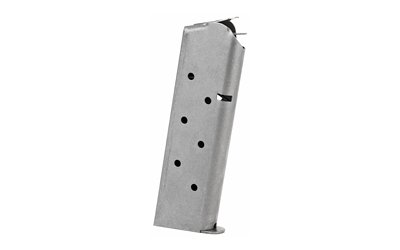 This is a Full-Size 1911 magazine in the traditional flush fit GI-style with all new materials and a follower designed for enhanced capacity (8 Rounds). It features a laser welded stainless steel magazine tube with welded base plate and is drilled for an optional polymer base pad (Base Pad and Screws Included).