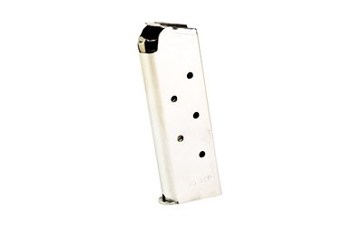 Stainless 7-round magazine for Compact and Ultra 1911 .45 ACP pistols. Pre-drilled for base pad installation.