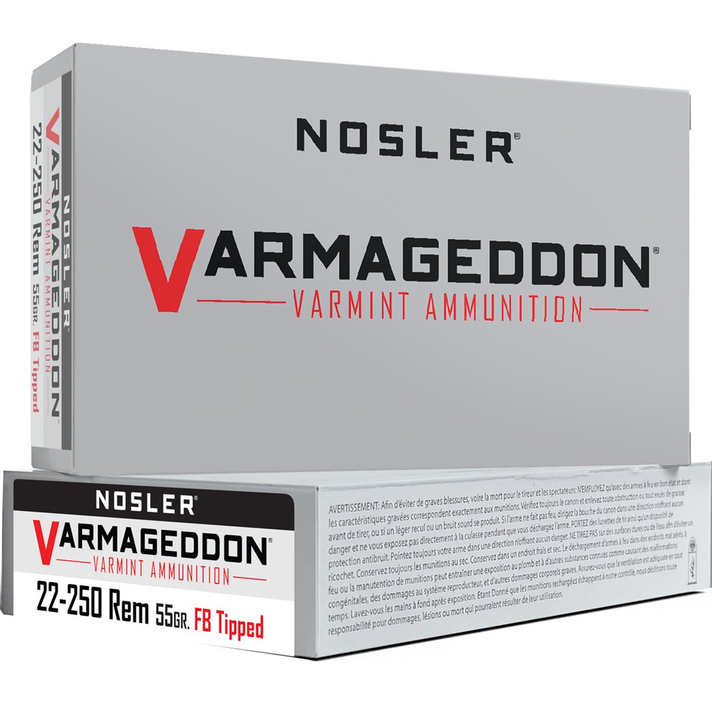 Nosler Varmageddon Rifle Ammunition 22-250 Rem. 55 gr. VG FBT 20 rd.