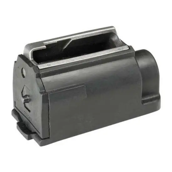 This rotary magazine is constructed of polymer with a black finish and is compatible with your Ruger 77/357.