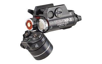 The multi-fuel TLR-1 HP-X features a hinged face cap with robust release controls that allow for front-loaded battery changes without removing the light from the firearm. Customizable rear paddle switches, momentary and constant on operation and a programmable strobe mode offer additional versatility for many applications.
