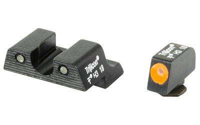 TRIJICON HD NS FOR GLK42 ORG FRONT: The HD Night Sights were specifically created to address the needs of tactical shooters. The three dot green tritium night sight set’s front sight features a taller blade and an aiming point ringed in photoluminescent paint while the rear sight is outlined in black and features a wider U-shaped notch.