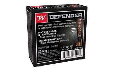 Highly effective in both 410 compatible handguns and shotguns, the 410-Bore PDX1 Defender ammunition features a distinctive black hull and black oxide high-base head; it combines 3 plated Defense Disc projectiles and 12 pellets of plated BB shot. The result is the ideal personal defense load for short-range engagements with the performance needed to stop threats.