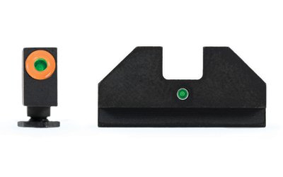 Shoot better day and night. XS F8 night sights increase front sight focus by using a large, high-contrast front sight for fast sight acquisition. The wide notch rear sight easily aligns with the front sight and increases front sight visibility. XS F8 night sights give you the best notch and post solution for fast sight acquisition in all lighting conditions. Green tritium in front and rear glow in low light to aid in sight alignment. Highly visible orange ring is designed for maximum visibility in bright to low light levels, with photoluminescent particles absorbing ambient light to glow in low light. Base of notch in rear sight is rounded to draw focus to the top edge of the sights to aid in proper alignment. Rear sight overhangs back toward shooter to reflect glare down away from the shooter’s eye. Rear sight ledge for one-handed slide manipulations. Fits in common holsters. Install by hand or sight pusher tool. Fits Glock models 17, 19, 22, 23, 24, 26, 27, 31, 32, 33, 34, 35, 36 & 38.