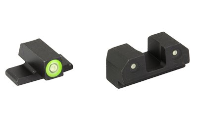 XS R3D Night Sights feature a traditional 3-dot tritium, notch and post sight picture. The blacked out rear increases contrast against the front sight. Available in orange or green, the front sight ring is equipped with their Ember Glow Dot Technology which absorbs ambient light and glows in low light. R3D sights are the brightest options for fast and accurate shooting in bright and low light. Green is the best option for low light and has the brightest glow intensity. Orange contrasts the best in bright light settings while still maintains visibility in low light. The front sight tritium lamp is brighter than the 2 rear sight lamps, reducing the possibility of mixing up the front sight tritium vial with a rear sight vial in low/no light. The front blade measures 0.145″ (3.68 mm) wide, and the rear notch is 0.170″ (4.32 mm) wide, which increases the visibility of the front sight. R3D sights are installable by sight pusher tools or by using a hammer and punch. Fits Springfield HellCat OSP.